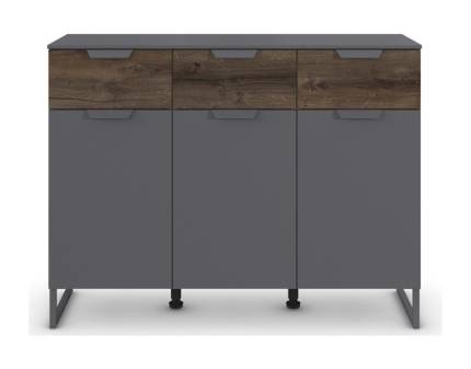 Comoda cu 2 usi si 1 sertar BAREA 120x92x42cm gri metalic/ stejar Atlantic dark
