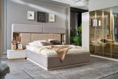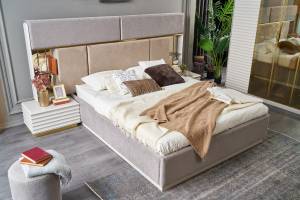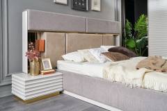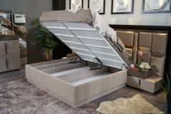Patul este prevazut cu spatiu pentru depozitare tip lada si cu somiera (sistem de rabatare cu pistoane pe gaz)