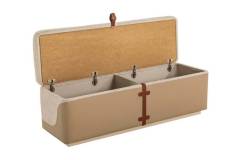 Patul este prevazut cu spatiu pentru depozitare tip lada si cu somiera (sistem de rabatare cu pistoane pe gaz)