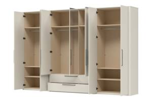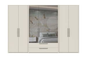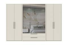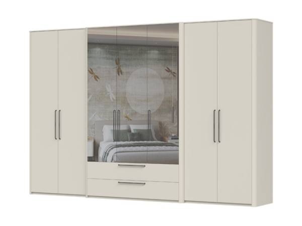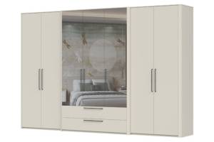 Dulap cu 7 usi cu balamale si 2 sertare AIR 335x225x56cm Pepper White/ oglinda, manere antracit