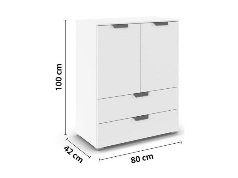 Comoda cu 2 usi si 2 sertare ADITIO 80x100x42cm alb alpin, manere crom