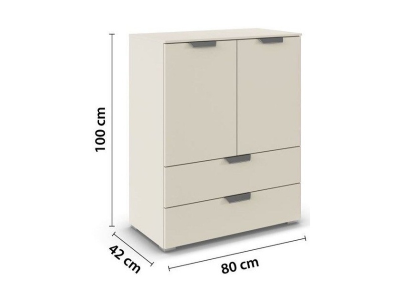 Comoda cu 2 usi si 2 sertare ADITIO 80x100x42cm champagne, manere crom