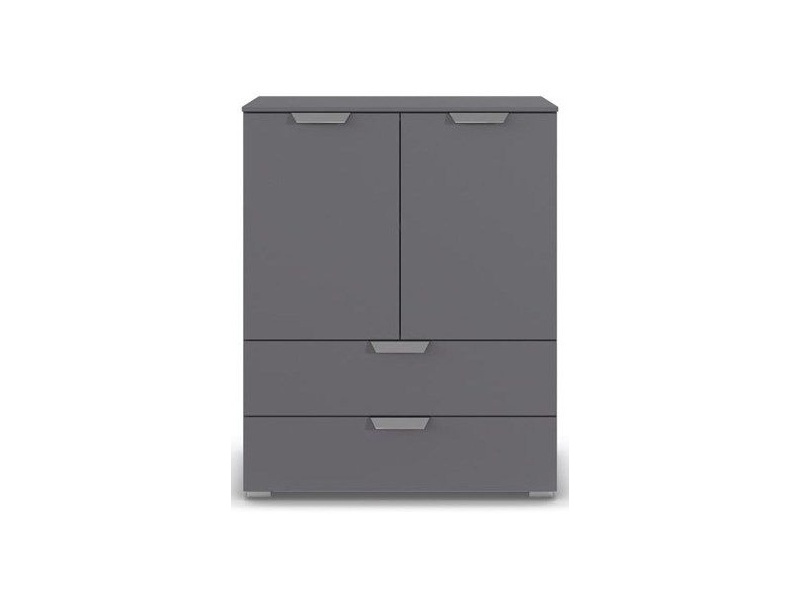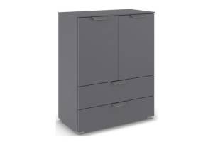 Comoda cu 2 usi si 2 sertare ADITIO 80x100x42cm gri metalic, manere crom
