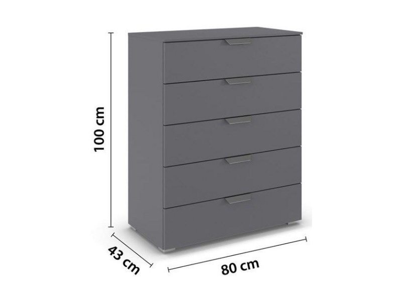 Comoda cu 5 sertare ADITIO 80x100x42cm gri metalic, manere crom