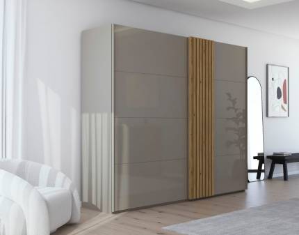 Dulap cu usi glisante ONYX 272x224x61cm antracit lucios/ nuc Pacific - oglinda, maner crom