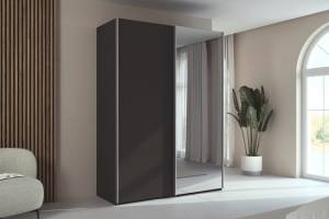 Dulap cu usi glisante TARO 162x223x69cm grafit/ oglinda, maner aluminiu