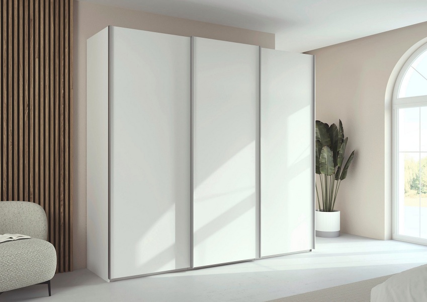 Dulap cu usi glisante TARO 242x223x69cm alb alpin, maner aluminiu