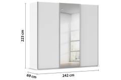 Dulap cu usi glisante TARO 242x223x69cm alb alpin/ oglinda, maner aluminiu