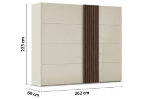 Dulap cu usi glisante TEGIO 262x223x69cm champagne mat/ sticla champagne - Walnut
