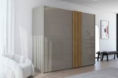 Dulap cu usi glisante TEGIO 281x223x69cm fango mat/ sticla fango - stejar Wild