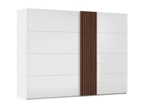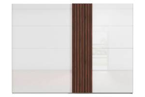 Dulap cu usi glisante TEGIO 301x223x69cm alb alpin/ sticla alba - Walnut