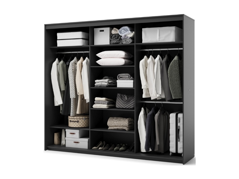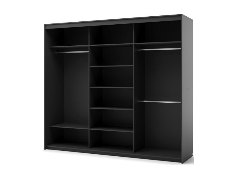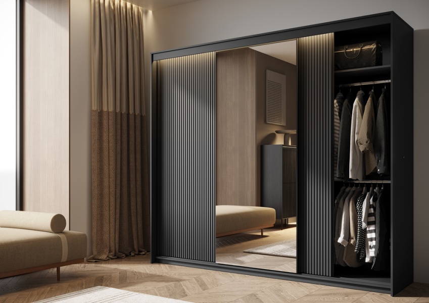 Dulap cu usi glisante TREND 250x222x63cm negru - oglinda, cu led