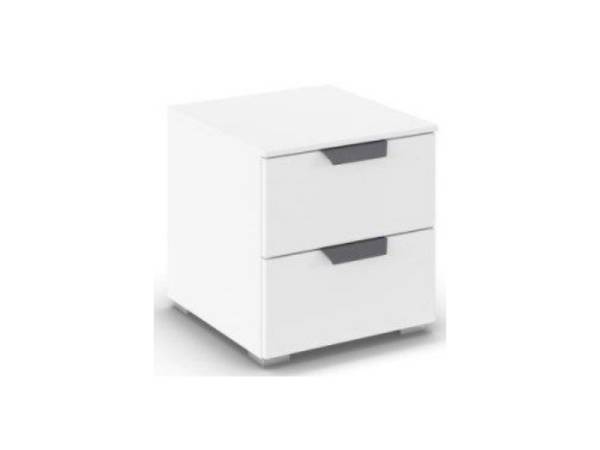 Noptiera cu 2 sertare ADITIO 40x42x42cm alb alpin, maner gri metalic