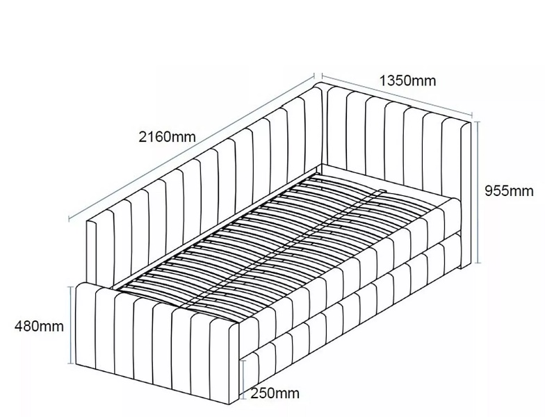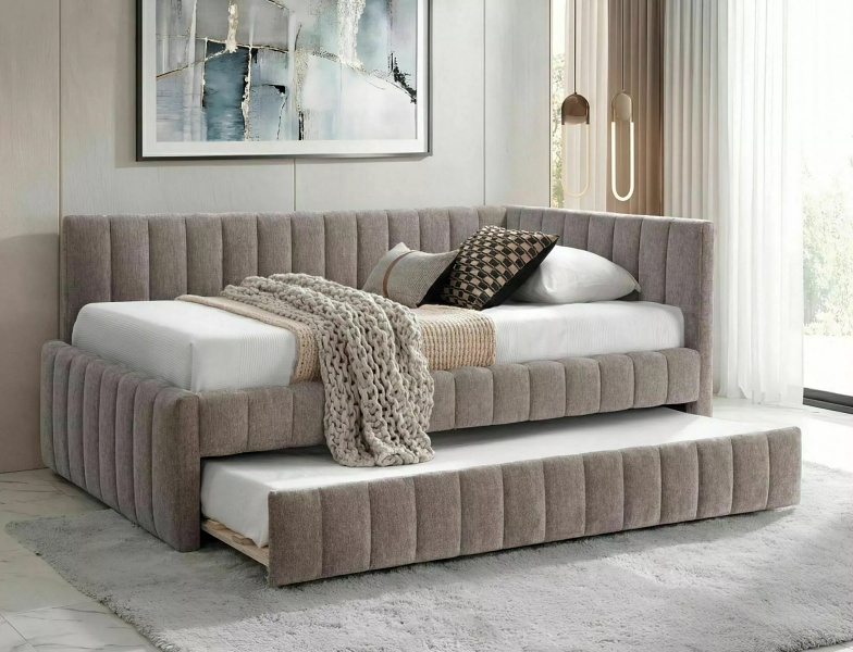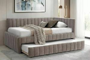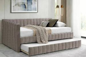 Pat tapitat cu somiera si pat suplimentar ALFIE RAVEN (120x200cm) material textil cappuccino