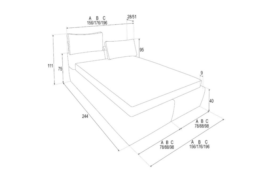 Zona pentru dormit: 140 X 200 cm / 160 X 200 cm / 180 X 200 cm