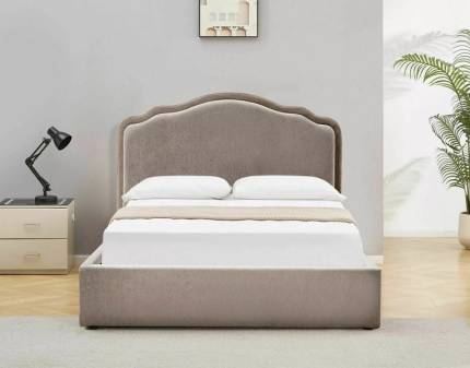 Pat tapitat cu somiera si spatiu pentru depozitare VUELTA (140x200cm) catifea cream, picioare negre