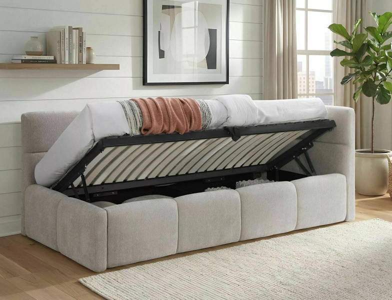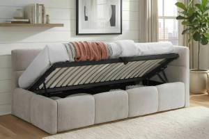Somiera este rabatabila pentru acces la spatiul penntru depozitare.