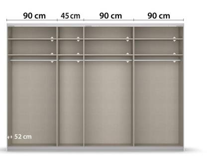 Dulap cu usi glisante SYNCRONO 316x211x62cm alb alpin/ 4 usi sticla alba configurabil