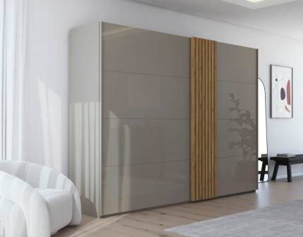Dulap cu usi glisante TEGIO 262x223x69cm fango mat/ sticla fango- stejar Wild