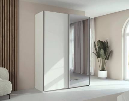 Dulap cu usi glisante TARO 162x223x69cm alb alpin/ oglinda, maner aluminiu