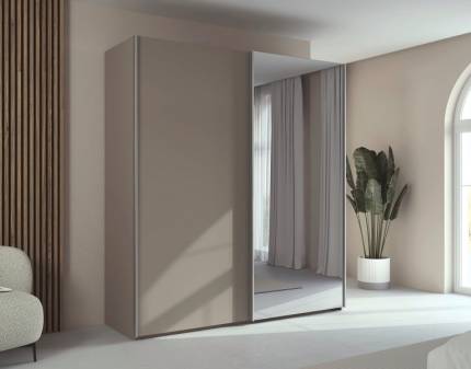 Dulap cu usi glisante TARO 162x223x69cm fango/ oglinda, maner aluminiu