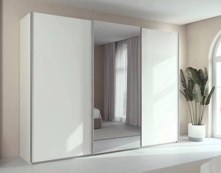 Dulap cu usi glisante TARO 301x223x69cm alb alpin/ oglinda, maner aluminiu