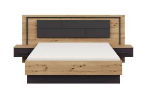 Cadru pat cu led si noptiere incorporate BILBAO (180x200cm) stejar artisan/ gri metalic - ecopiele neagra
