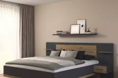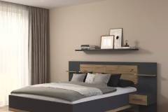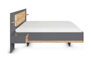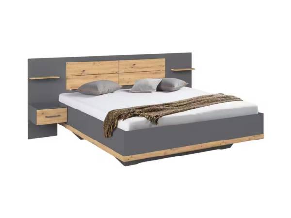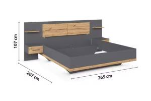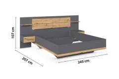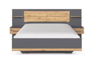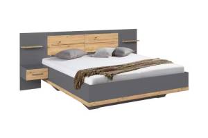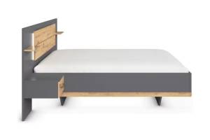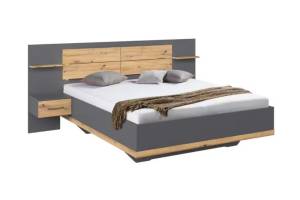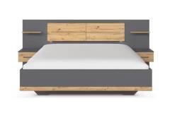 Cadru pat cu noptiere incorporate BOSTON EXTRA 160 / 180cm gri metalic/ stejar Artisan