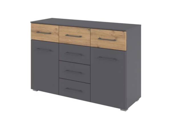 Comoda cu 2 usi si 6 sertare BOSTON EXTRA 120x81x42cm gri metalic/ stejar artisan