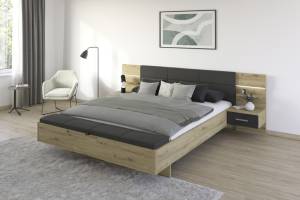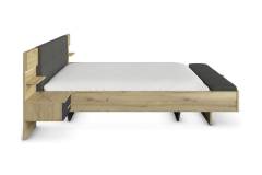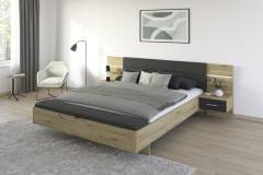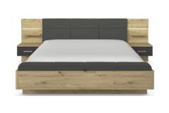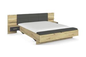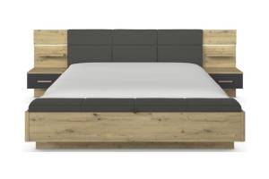 Cadru pat cu noptiere cu led incorporate MOSBACH (180x200cm) stejar Artisan/ gri metalic + ecopiele