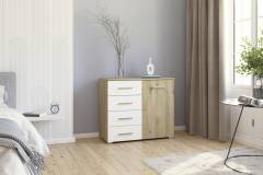 Comoda cu 1 usa si 4 sertare MOSBACH 80x81x42cm stejar Artisan/ alb alpin