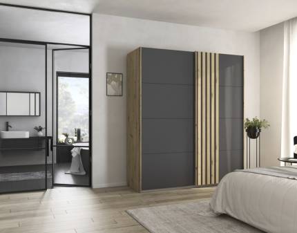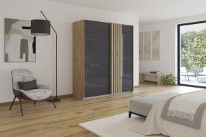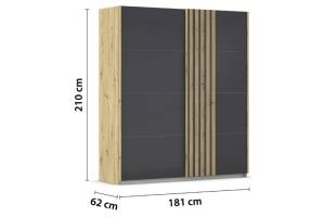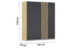 Dulap cu usi glisante MOSBACH 181x210x62cm stejar Artisan/ sticla basalt