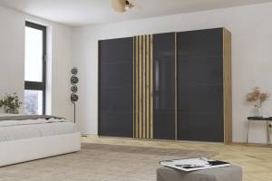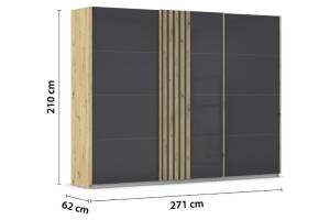Dulap cu usi glisante MOSBACH 271x210x62cm stejar Artisan/ sticla basalt