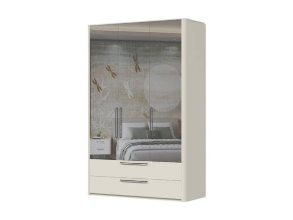 Dulap cu 3 usi cu balamale si 2 sertare AIR 146x225x56cm Pepper White/ oglinda, manere antracit