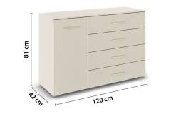 - 120 / 81 / 42 cm (1 usa + 4 sertare)