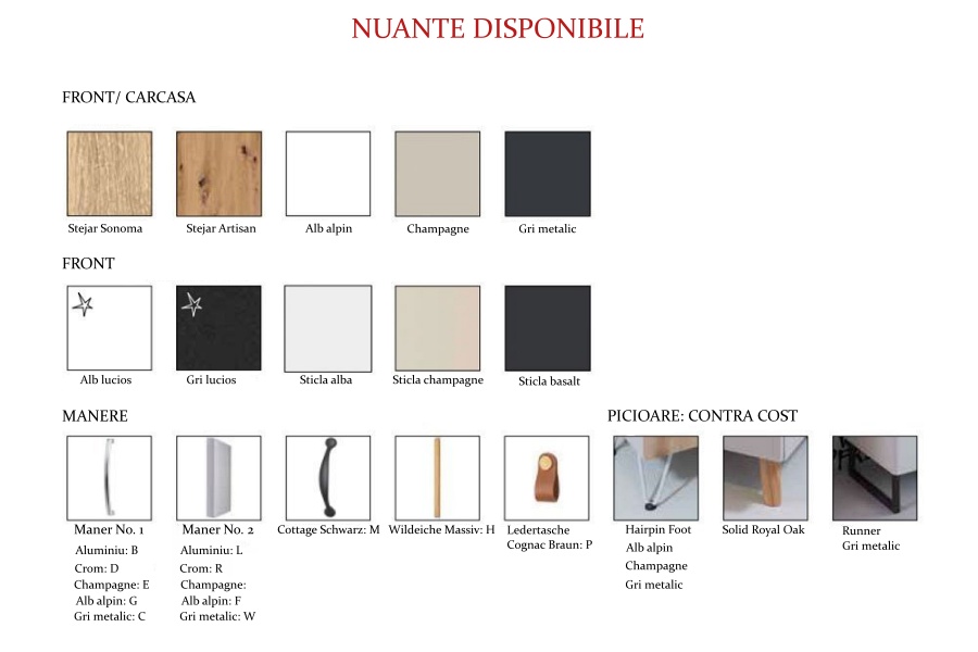 COMBINATII DE CULORI DISPONIBILE