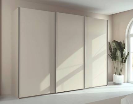 Dulap cu usi glisante BOSTON EXTRA 271x210x62cm alb alpin/ silk grey - oglinda, maner alb alpin