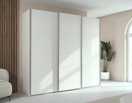 Dulap cu usi glisante MINOSA PLUS cu polite 136x197x48cm alb alpin/ alb lucios - oglinda, maner aluminiu