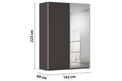 Dulap cu usi glisante TARO 162x223x69cm grafit/ oglinda, maner aluminiu