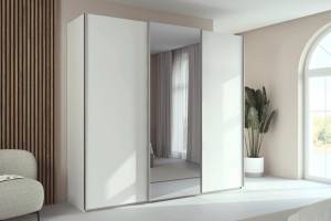 Dulap cu usi glisante TARO 242x223x69cm alb alpin/ oglinda, maner aluminiu