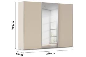 Dulap cu usi glisante TARO 242x223x69cm champagne/ oglinda, maner aluminiu