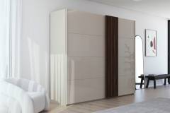 Dulap cu usi glisante TEGIO 262x223x69cm champagne mat/ sticla champagne - Walnut