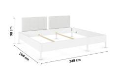 Cadru pat cu tablie tapitata MARE (240x200cm) alb alpin, material textil grey