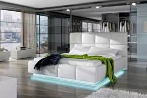 Pat tapitat cu somiera si spatiu pentru depozitare ASTI PROMO (180x200cm) ecopiele alba