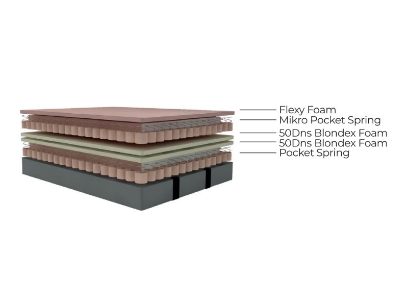 Saltea: Saltea cu arcuri tip POCKET SPRING + 2 x 50DNS BONDEX FOAM (spuma) + MIKRO POCKET SPRING + FLEXY FOAM (spuma)