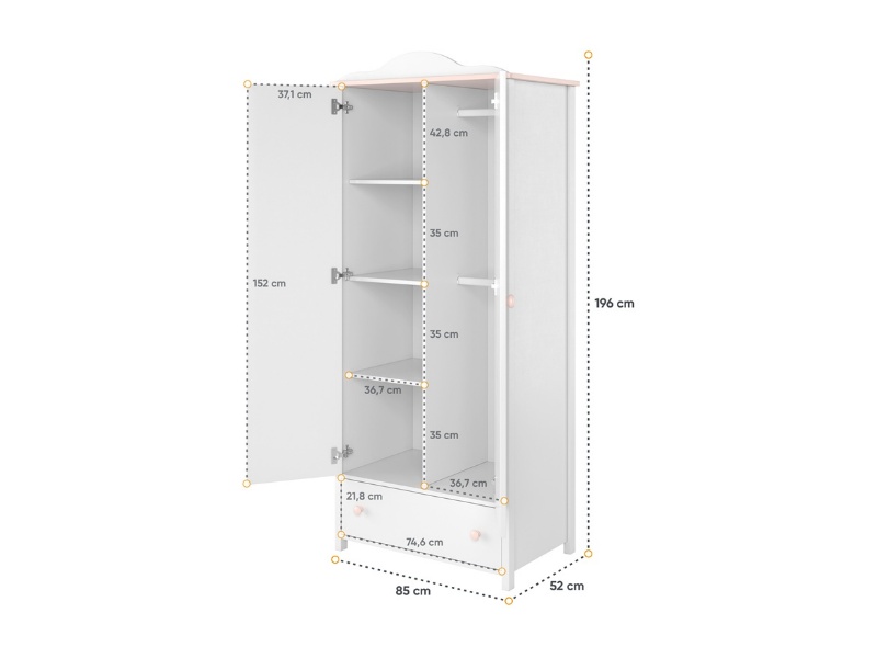- dulapul are 2 usi si 1 sertar pentru depozitare