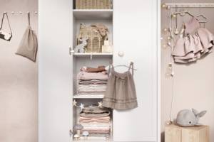 - 3 polite si 2 bare pentru umerase in interiorul dulapului