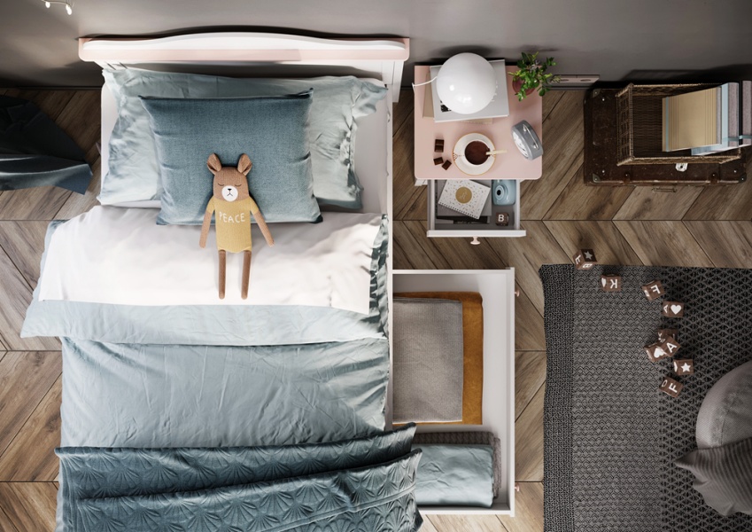 - cele 2 sertare pentru depozitare de sub pat sunt prevazute cu role