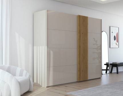 Dulap cu usi glisante TEGIO 262x223x69cm champagne mat/ sticla champagne - stejar Wild