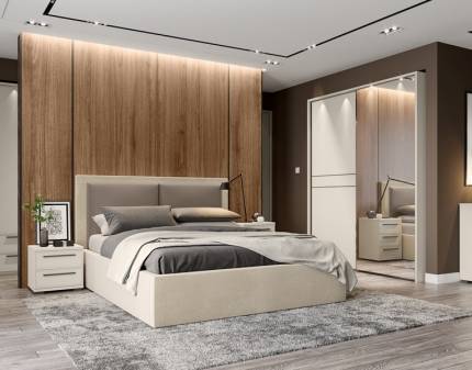 Dulap cu 4 usi cu balamale OPERA 182x224x56cm casmir/ oglinda, manere maro
